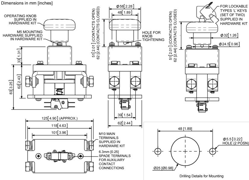 ED402L系列开关设计用于在出现严重电气故障时提供断开电池或其他电源的快速方法。虽然开关主要用于电池供电的车辆,但它们也适用于静态电力系统。所有类型都能够在紧急情况下安全地破坏满载电池电流。