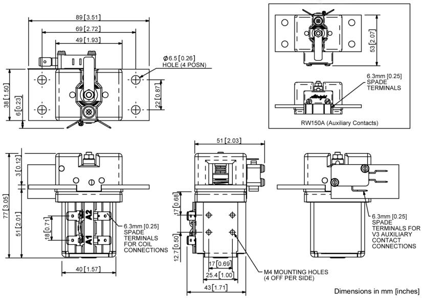 RW150设计用于不间断电流负载切换的电信和配电应用。这些接触器主要用于直流负载,但也可用于交流电。